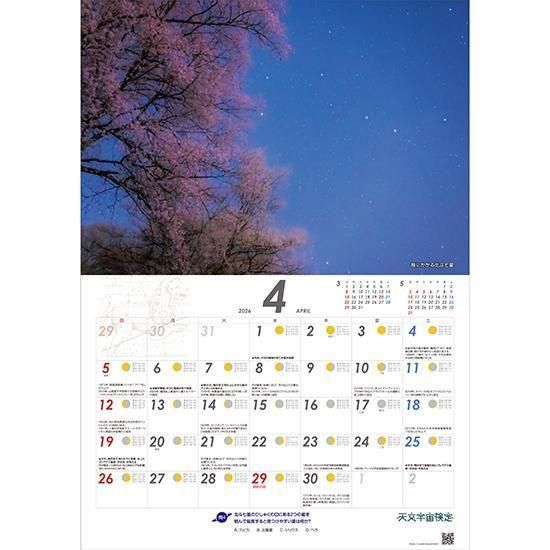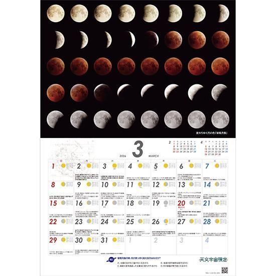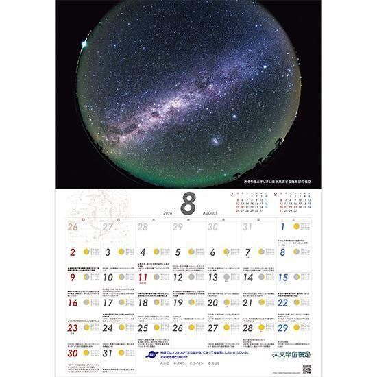 各月にはフラムスチード星図、月の満ち欠け、肉眼で見られる天文現象などに加え、 宇宙開発史に残る数々の記念日、天文宇宙に関するミニテストを掲載。 「見て読んで学べる」カレンダー。